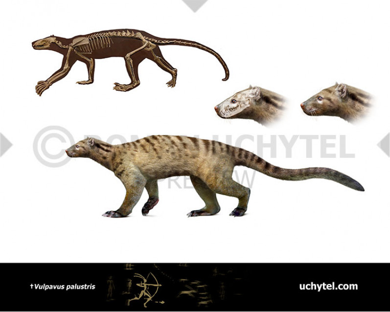 Vulpavus – ancient primitive carnivores that lived in the Eocene and became extinct 46 million years ago. Probably, they were the ancestors of all contemporary carnivores. Different species were living on the trees or on the ground. Miacines divided into two groups: Miacines (with the full molars) and Viverravines (with a reduced number of molars and more specialized carnivorous teeth).