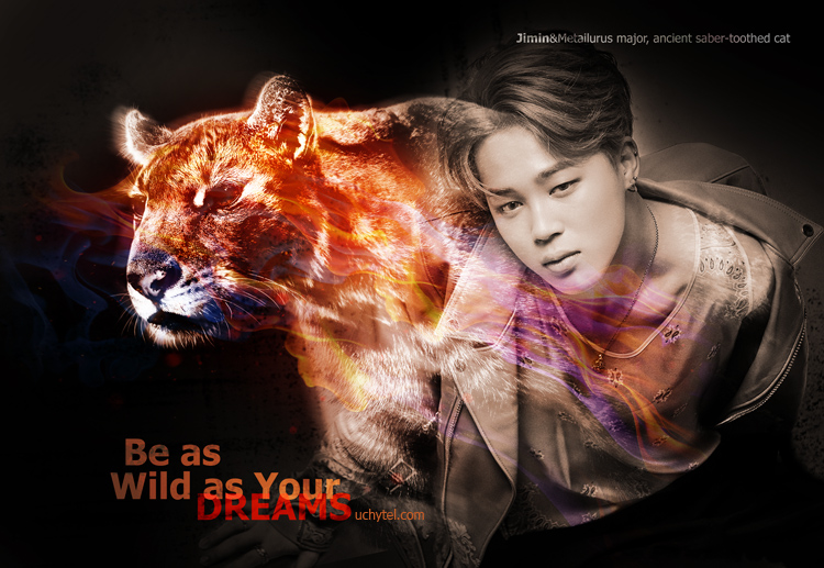 • Jimin & Metailurus major, an ancient saber-toothed cat – embodies feline grace.